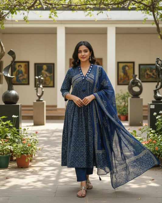 Moksha Embroidered Cotton A-line Plazo & Duppata Set